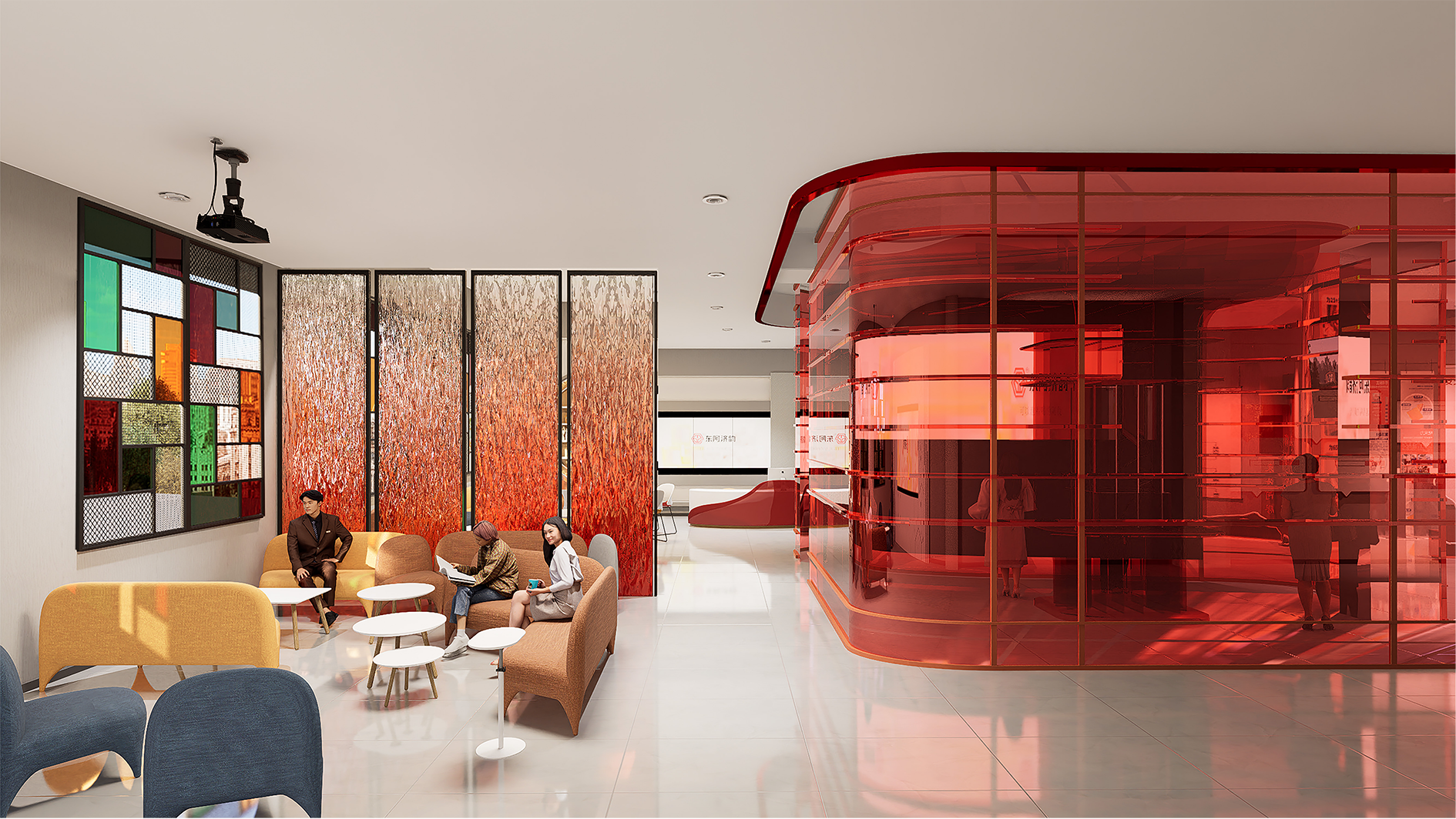 本案以“中国红”作为空间叙事的情感基调和视觉线索,统筹整体氛围营造与功能布局。中心展示区与养生文化科普区集中呈现阿胶系列产品,结合详实生动的文化阐释,引导观众深入感知阿胶的历史底蕴与养生精髓。