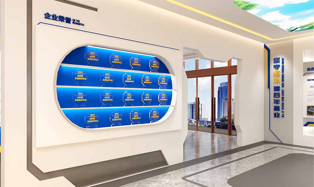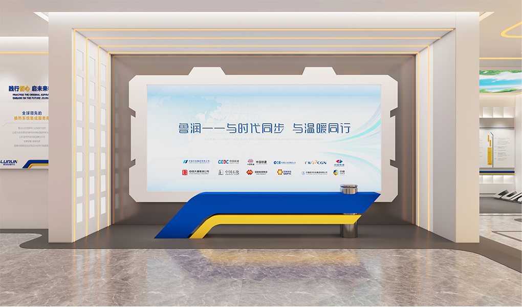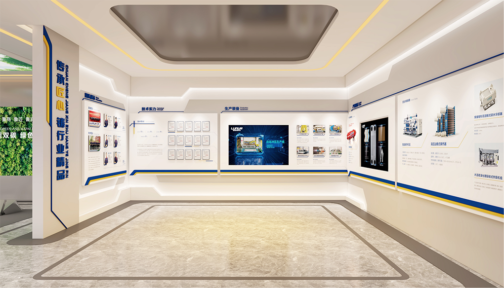 设计以“品质承匠心,鲁润达天下”为核心叙事,深度融合企业VI识别系统与换热器管道造型元素,构建贯穿始终的空间视觉基因。在兼顾实用性、美观性与经济性的前提下,以内容为纲,聚焦“好文化、好管理、好产品、好技术”四大板块,从文化厚度、技术深度、产品维度和品牌温度出发,架构企业历程、产品实力与未来愿景三大展区。通过沉浸式氛围营造、品牌故事融入与核心价值提炼,增强展厅感染力与记忆点,在有限预算内最大化空间价值,塑造更具竞争力与合作吸引力的品牌体验前沿阵地。