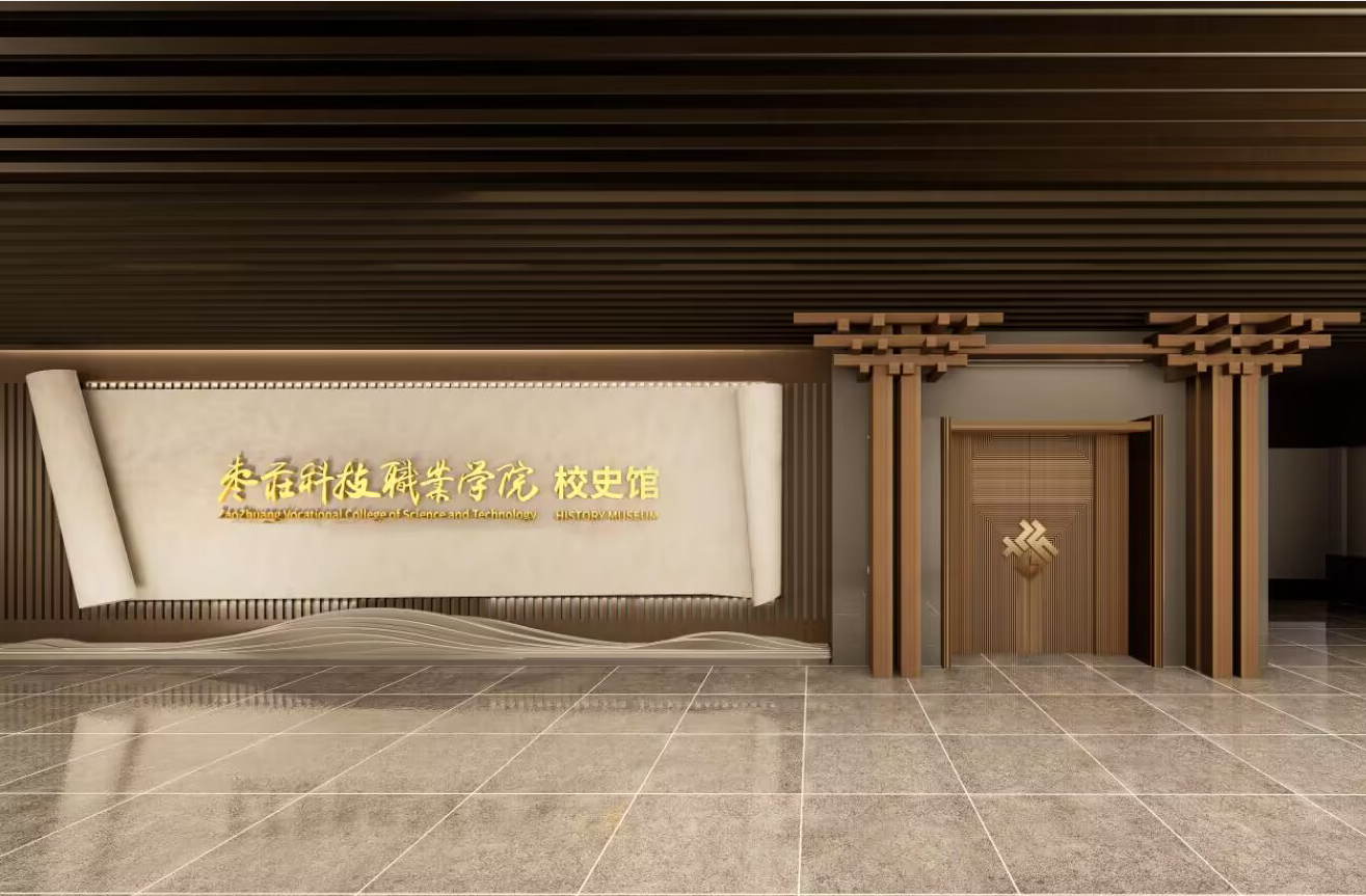 枣庄科技校史馆是一座系统记录与展示枣庄科技学校历史文脉、文化积淀与教育成就的综合性场馆。通过精心策划的叙事型展陈与主题性活动,该馆全面呈现学校的独特身份与卓越历 程,构建连接过去、现在与未来的文化桥梁。校史馆整体由六大功能板块构成:馆名墙、序厅、历史展厅、成果展厅、未来展厅及多功能临展厅,共同形成完整而深度的参观体验序列。